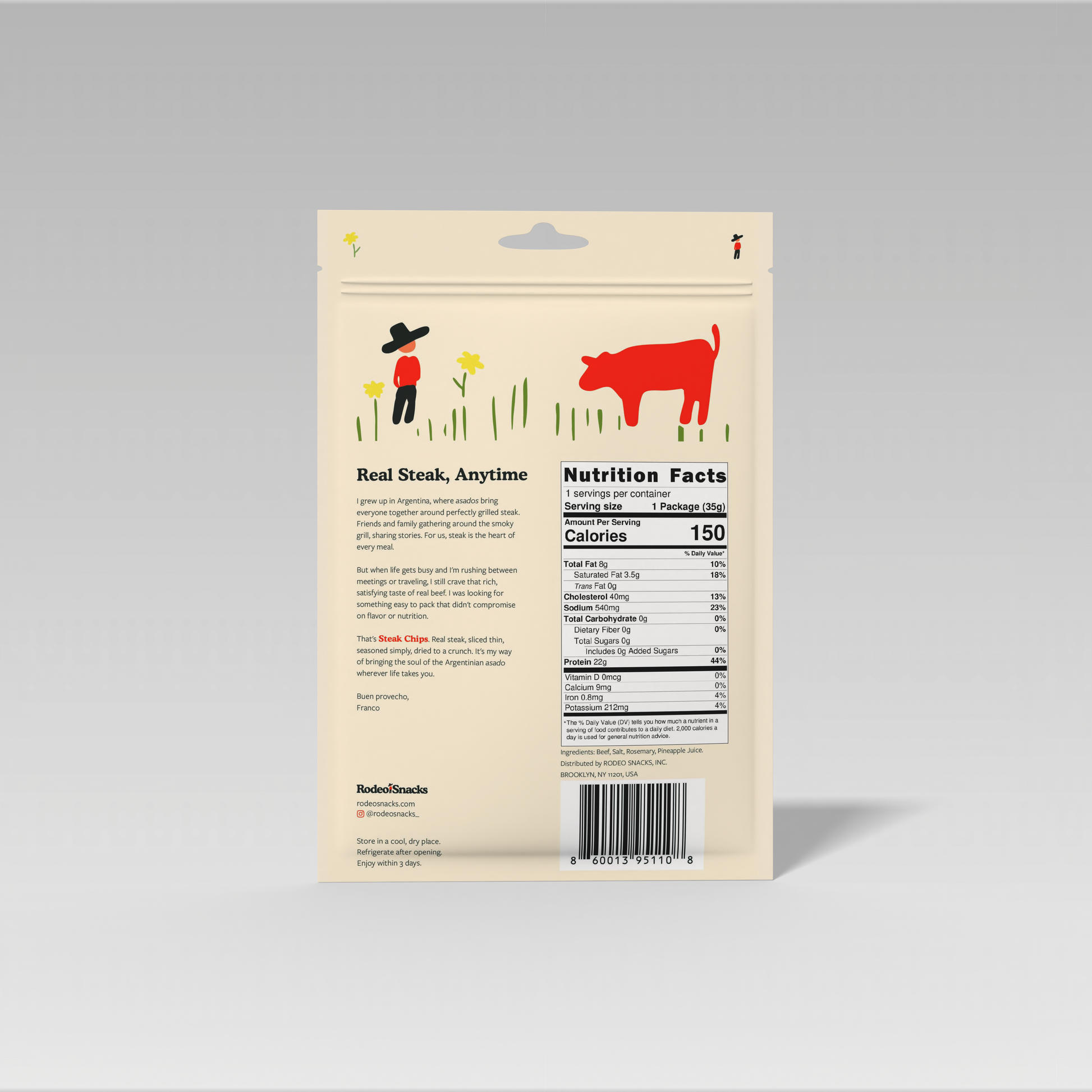 Thin, crispy slices of premium steak — 22 g protein, 0 g sugar. It’s the best tasting protein snack that you’ve ever had.